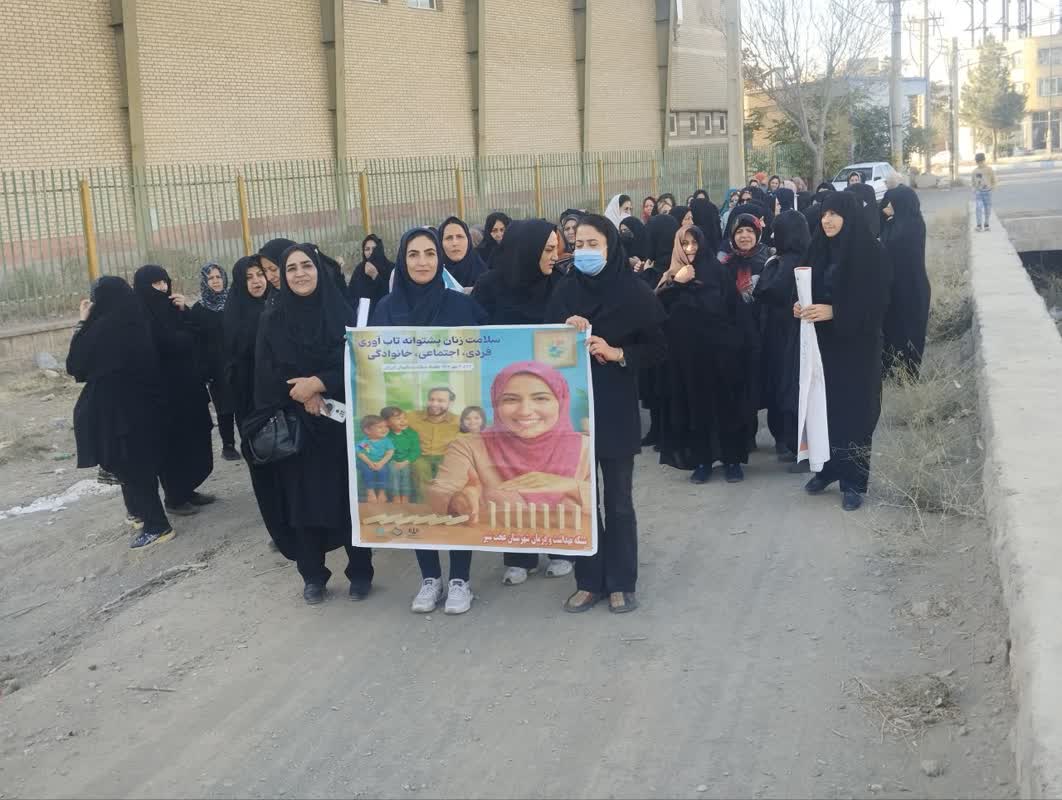 برگزاری برنامه پیاده روی بانوان با شعار سلامت زنان پشتوانه تاب آوری فردی ، اجتماعی ، خانوادگی بمناسبت گرامیداشت هفته ملی سلامت بانوان ایرانی وهفته تربیت بدنی با حضور کارکنان شبکه بهداشت واداره ورزش وجوانان شهرستان
