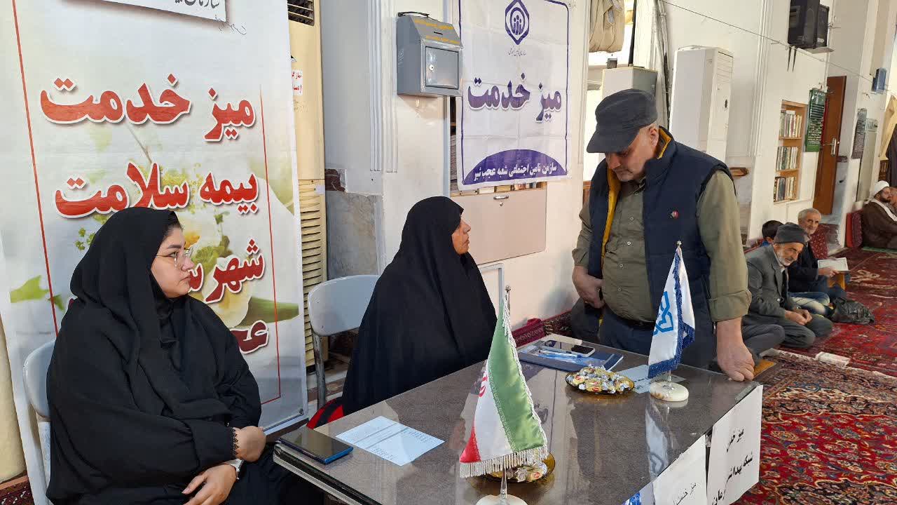 میز خدمت شبکه بهداشت ودرمان شهرستان عجبشیربا حضور مدیر شبکه بهداشت ودرمان در آبانماه ۱۴۰۴ در محل مصلی مسجد جامع برگزار شد